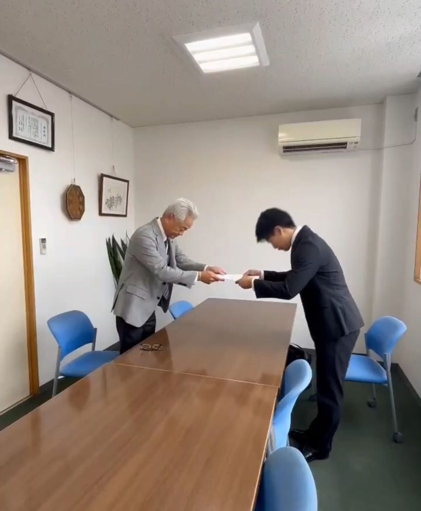 10月1日(水)、来春入社予定の伊藤君を迎え、内定式を執り行いました。
